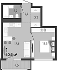39.4 м2 17 этаж