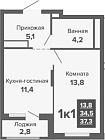 Жилая 27.4 м2