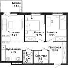 Жилая 13.3 м2