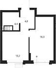 42.13 м2 6 этаж