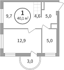 Жилая 12.46 м2