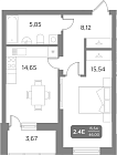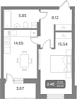 Жилая 14.9 м2
