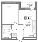 Жилая 26.6 м2