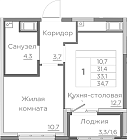 33.25 м2