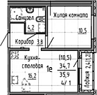 34.7 м2 11 этаж