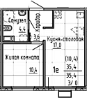 35.4 м2 9 этаж
