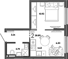 28.9 м2 13 этаж