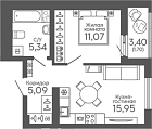 34.34 м2 15 этаж