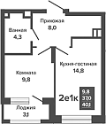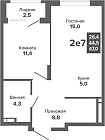 Жилая 25.7 м2