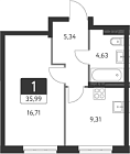 Жилая 23.84 м2
