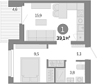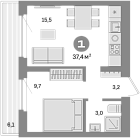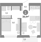 Жилая 34.64 м2