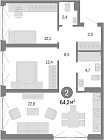 Жилая 37.24 м2