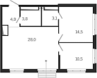 Жилая 26.4 м2