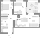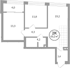 Жилая 12.8 м2